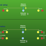 - one-ball: attacker dribbles a ball