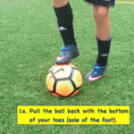 - Pull the ball back at an angle with the bottom of your right foot toward your left heel.