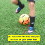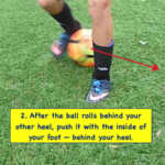 - When the ball rolls past your left heel, push it with the inside of your right foot — to the left — behind your left heel. This is similar to making an inside of the foot pass, but you’re doing it behind your other foot. Some people call this “tucking the ball behind” your other foot.