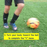 - Push the ball in the new direction with the inside of your right foot. This will complete the “V” pattern.
